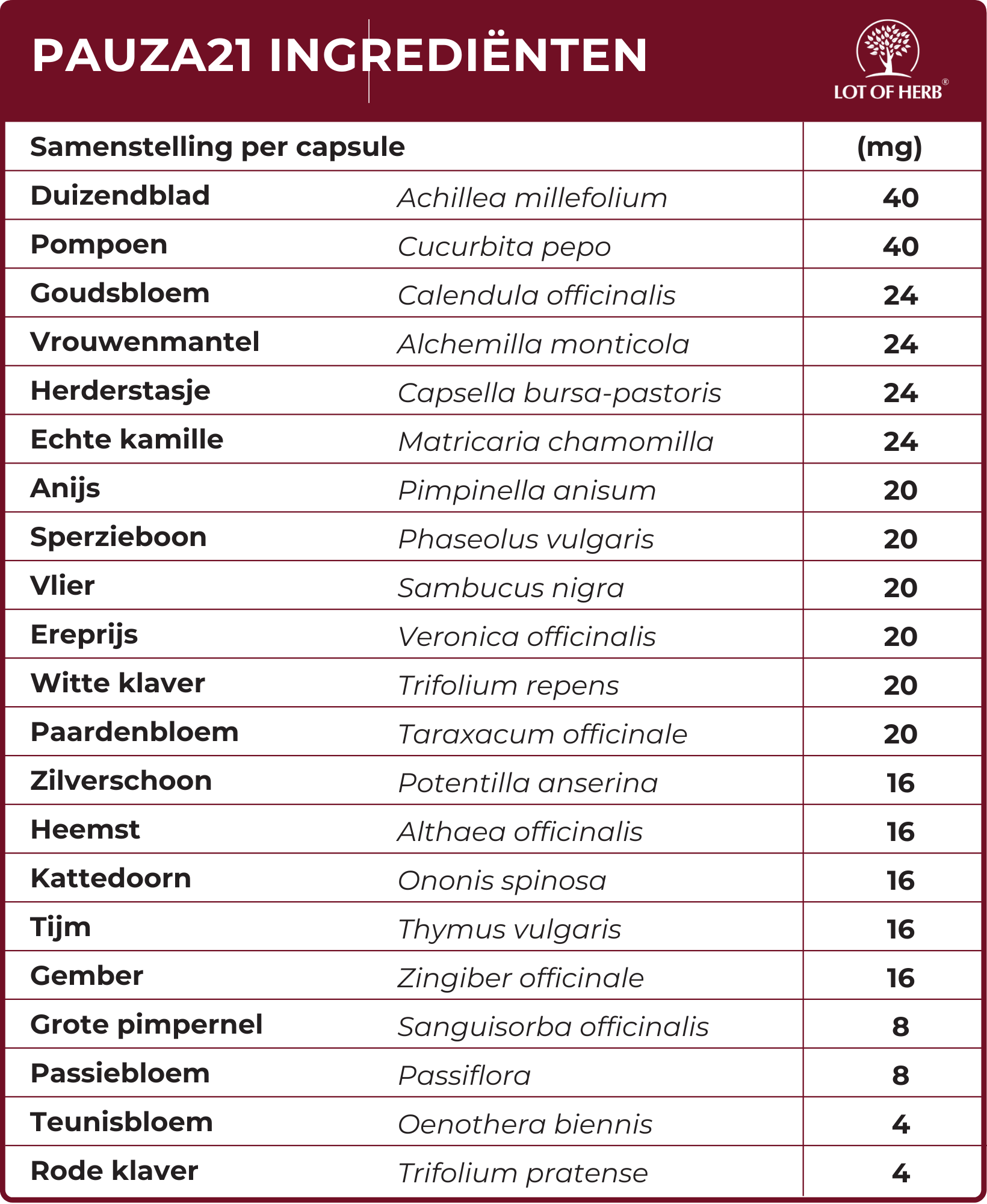 In tegenstelling tot supplementen met slechts 1 of 2 werkzame stoffen, biedt Pauza21: